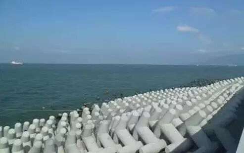▼岛外侧安装海浪缓冲桩