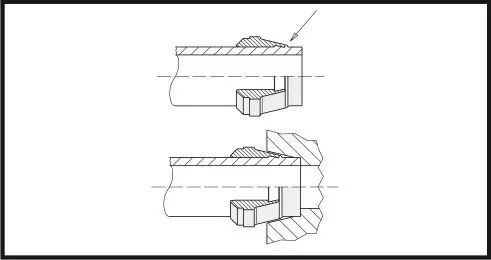 13)检查预装接触面,使用一个开槽的接头来进行,预装硬管的端部应该顶住接头体的止回面上。