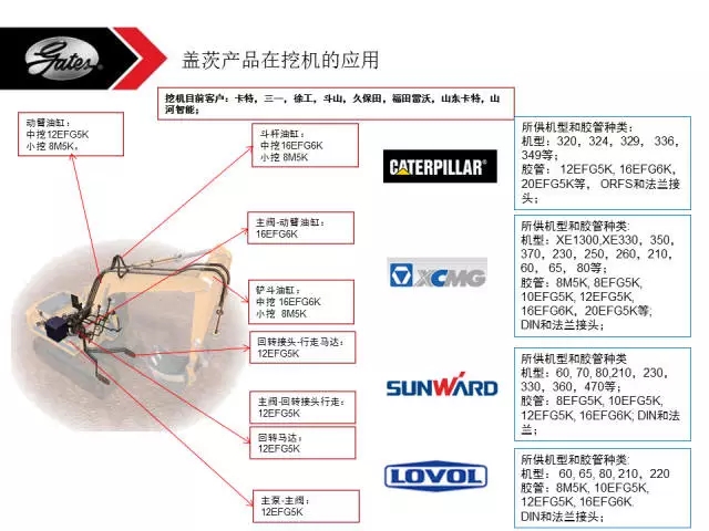 主要销售的产品有: 盖茨易安毕品牌,进口硬管接头(卡套式、扩口式、焊接式)、高压胶管总成、进口快速接头、进口测试系统、进口高压球阀、法兰、管夹、旋转接头、液压泵阀等;
