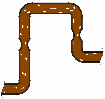 在整个液压系统中,紊流多发生在管路发生弯曲的地方以及节流孔处,如图8所示。在设计液压系统时,我们可以尽可能增大管径和管接头的通径来改善这一现象。液压系统基础——流量、流速、流体流动状态