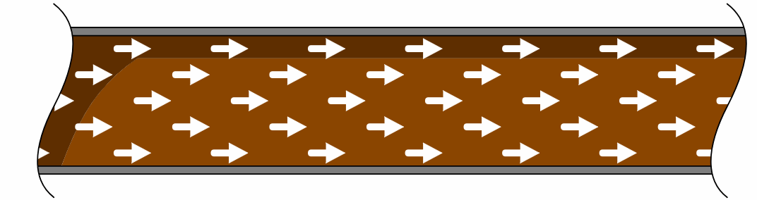 3、层流层流是流体的一种理想流动状态。其具体内容可表述为:流体在管内低速流动;流体质点沿着与管轴线平行的方向做平滑的直线运动;流体的流速在管子中心处最大,接近管壁处最小。我们简单的用图6来示意。