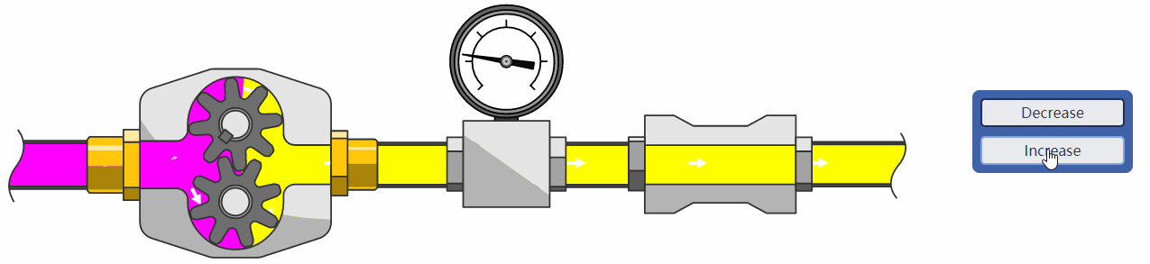 另一方面,动态压力与流体的动能有关。因此,当流体所受阻力增大时,动态压力就增大。请看图12中的演示:当不断减小节流口的通流面积时,压力表的读数不断增加;当不断增大节流口的通流面积时,压力表的读数不断减小。