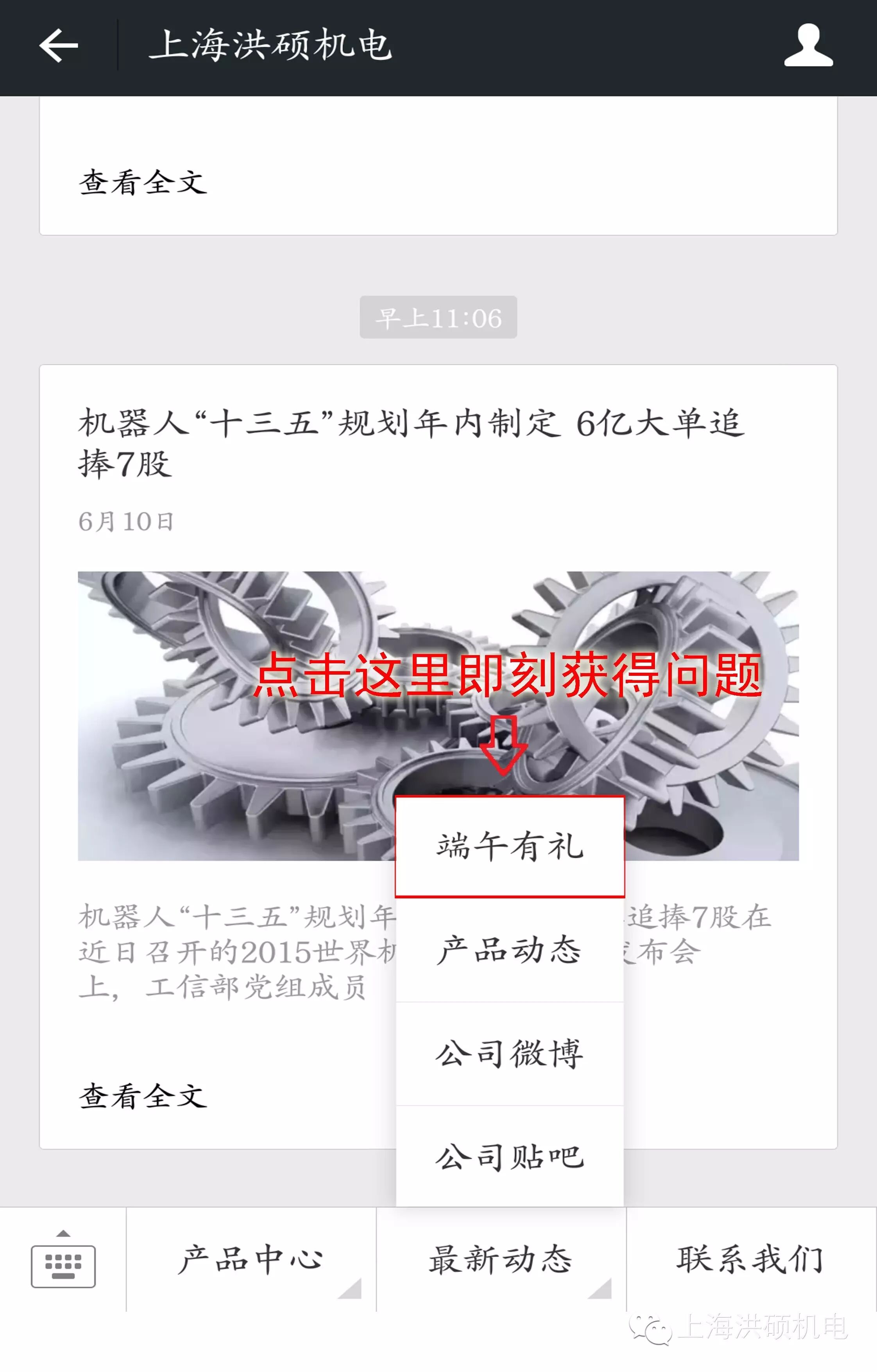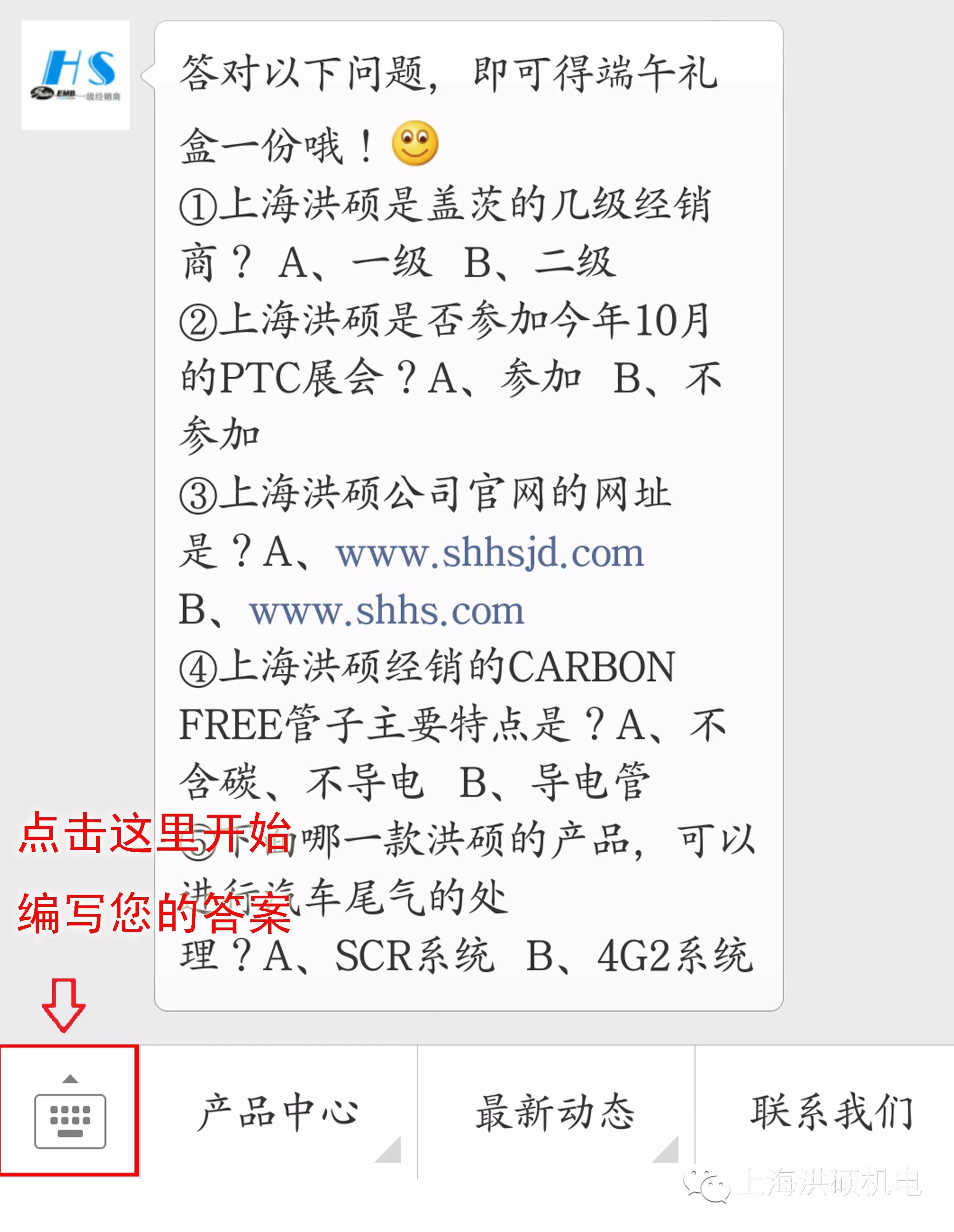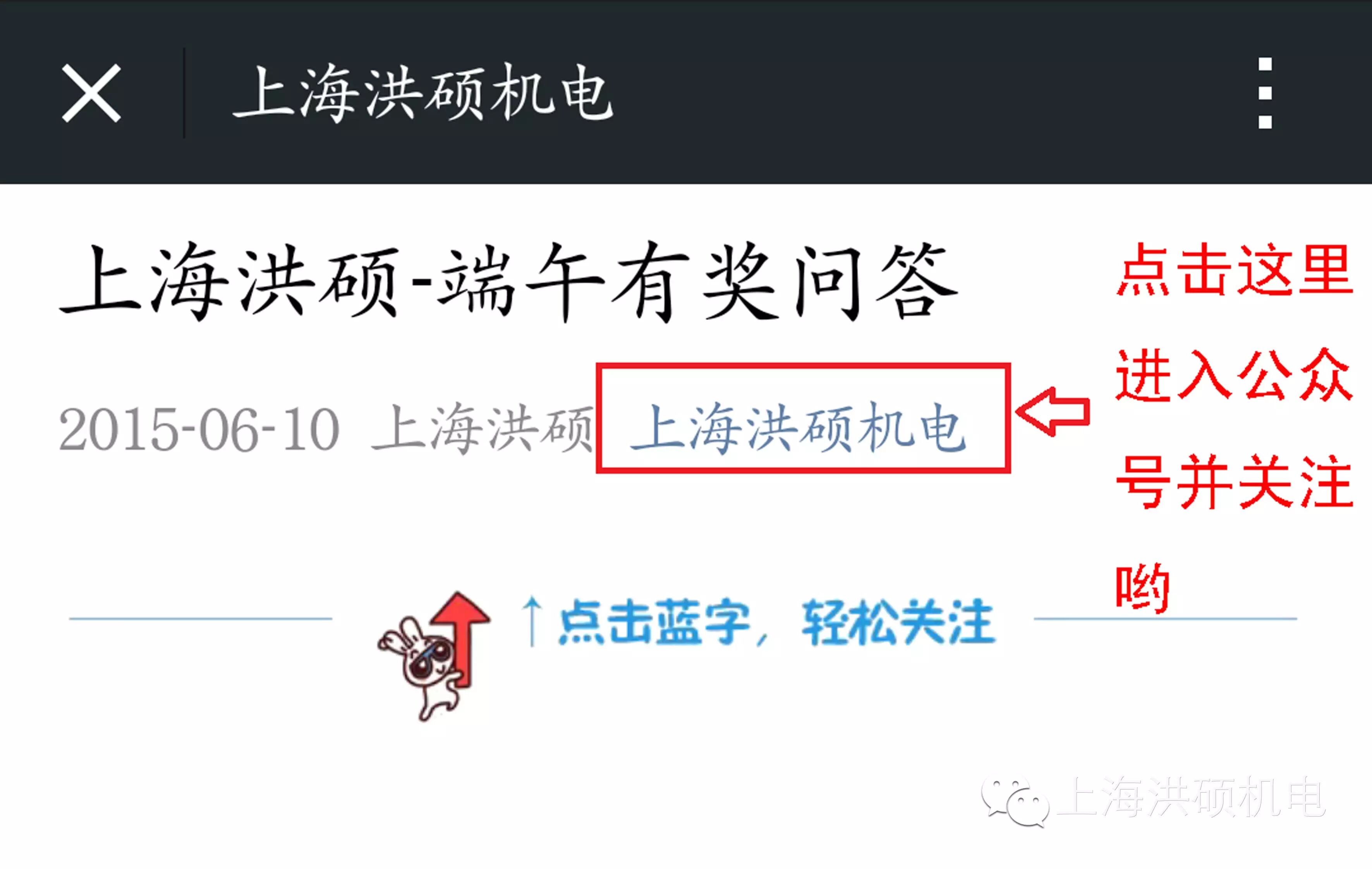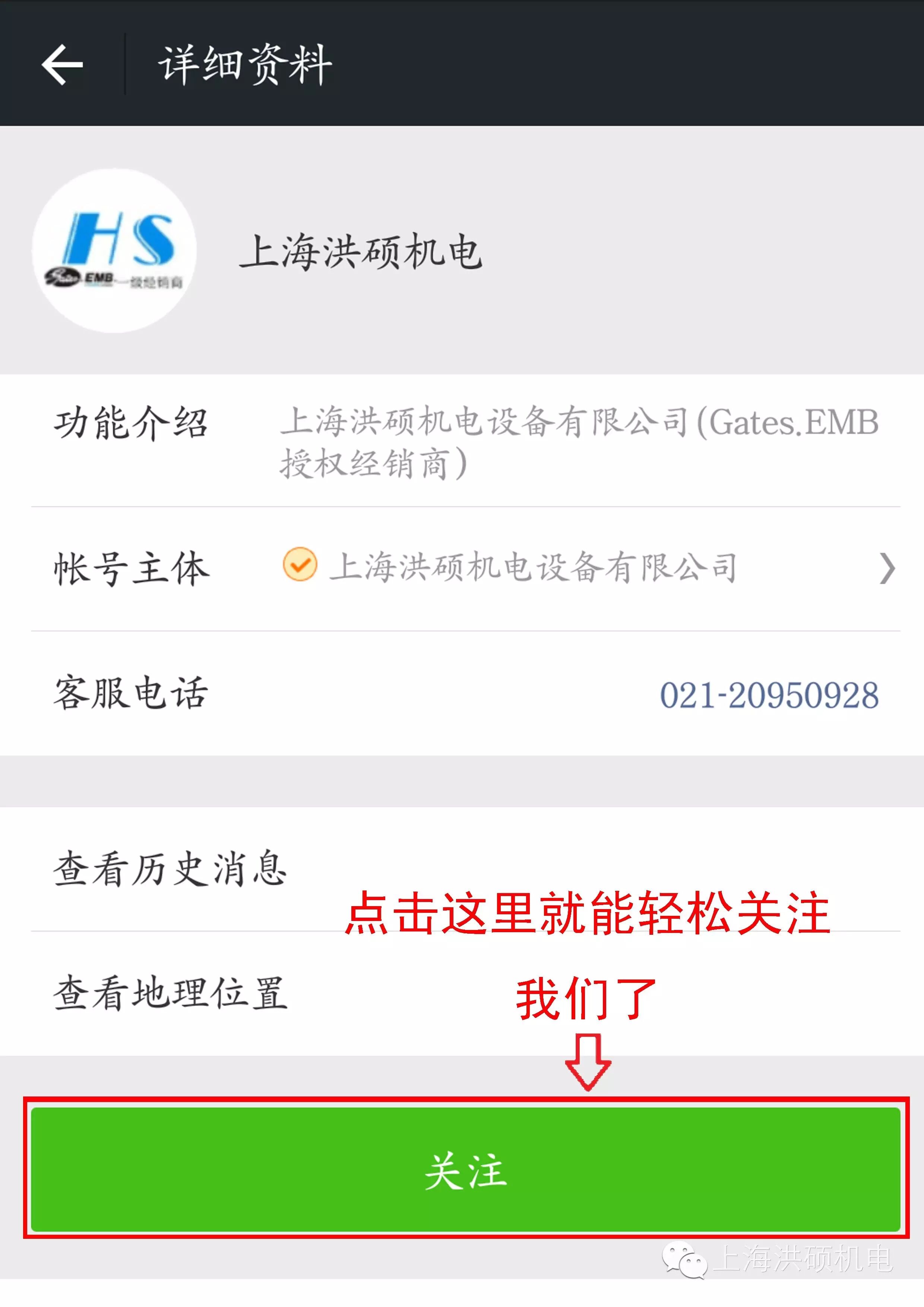 点击本文章标题下方的蓝色字样“上海洪硕机电”即可进入公众号关注页面。