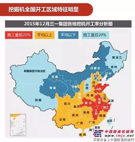 【挖掘机说:房地产施工下降了】三一重工的混凝土机械市场占有率超40%,2015年前11个月,混凝土设备的使用率同比出现大幅下降。其中,水泥搅拌站1-11月份的施工量跌幅超30%,最直观地反映出房地产建设市场的不景气。与此相类似,用于大型矿山、煤矿的大型挖掘机开机率和运行时间也出现下降。“水泥搅拌了就要使用,这个数据具有相当大的说服力。”三一重工副总裁贺东东说。房地产开工下降的同时也出现了一些新的可喜变化。内蒙古的混凝土机械使用量排名靠后,但桩机和路面建设使用情况排名靠前,显示这个传统资源型区域的建设重点重在调整。